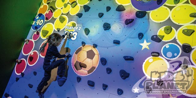 Klettern oder "Bouldern" ist an sich schon ein Riesenspaß. Ein High-Tech-Beamer projiziert Spiele auf die Kletterwand und eine Kamera nimmt die Bewegungen der Kletterer auf und erkennt dabei sogar, um welches Körperteil es sich handelt. So wird der Kletterer Teil eines Videospiels.